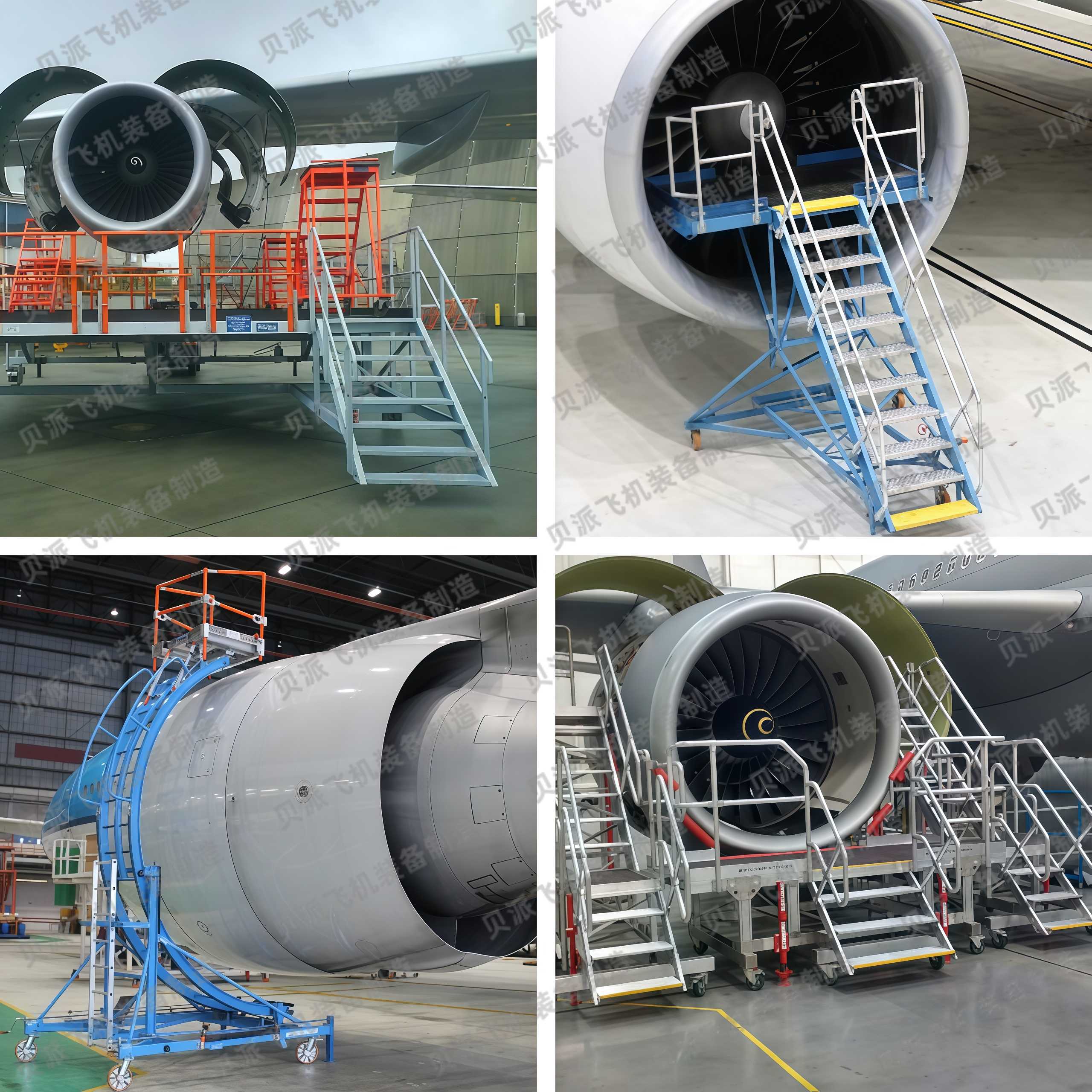 贝派飞机装备制造有限公司专注于航空维修设备的研发与生产,致力于为航空产业提供高效、安全、智能的解决方案。其中,铝型材发动机维修平台踏步移动升降系统作为公司核心产品之一,广泛应用于民用及军用飞机发动机的维护、检测与拆装作业中,充分体现了现代航空地面支持设备的技术先进性与工程实用性。